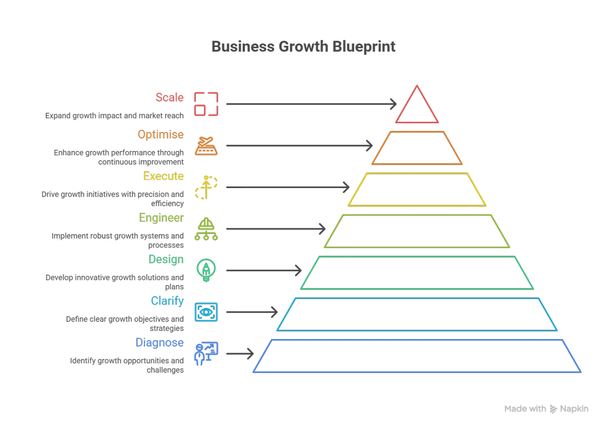 This means conducting thorough diagnostics to identify where growth is stalling, clarifying your ambitious goals, designing bespoke strategies, and delivering the precise business development and technology solutions needed to make it all tangible reality.